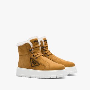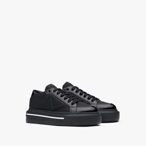 A mix of materials characterizes these Prada America’s Cup high-top sneakers that combine patent leather and bike fabric in a versatile, contemporary design defined by a voluminous rubber sole. Cotton laces personalized by the logo-print tips complete the shoe decorated with the iconic Linea Rossa logo.