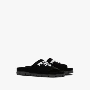 Thanks to the iconic Monolith rubber sole, unique and monolithic, the chunky yet light design, reimagines Prada’s dual soul with a modern twist. Traditionally used in fine classic footwear, brushed leather is reinterpreted in these contemporary, unexpected sandals for a hybrid result that reflects the duality of the brand.