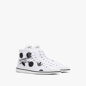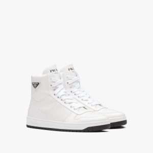 Defined by their thick platform sole, these sneakers combine brushed leather and Re-Nylon: a regenerated nylon yarn (ECONYL?)produced from recycled, purified plastic trash collected in the ocean, fishing nets and textile waste fibers.