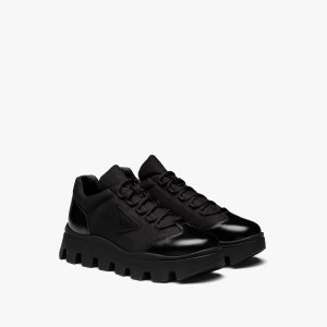 Defined by the rubber sole with a modernist line, these laced shoes are characterized by their artisan workmanship and the careful details that distinguish Prada footwear. Traditionally used in fine classic footwear, brushed leather has been part of Prada’s iconic materials since the ’90s.