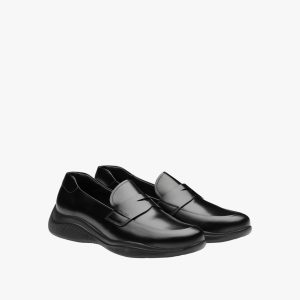 The classic espadrille style is reinterpreted with the Prada logo and a hand-made hemp mid-sole stitched directly to the upper.