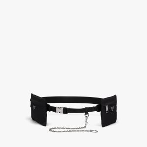 A timeless accessory updated with contemporary spirit: this leather belt has two interchangeable 925 sterling silver buckles, both decorated with the Prada logo that appears on one as a delicate element and on the other as a more conspicuous feature.