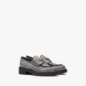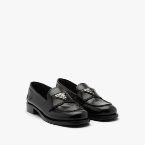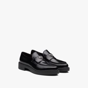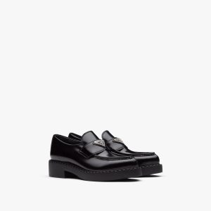 Unique and bold, these loafers emphasize the concept of duality, which is essential in the aesthetics of the brand. The modernist maxi sole with a unique monolithic design creates a dialog with the brushed leather upper featuring a rigorous look and polished finish. A hybrid yet harmonious soul characterizes the Monolith line that combines diametrically opposed images to create a timeless silhouette. The iconic enameled metal triangle logo decorates the design.
