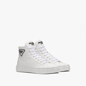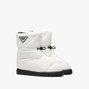 Defined by a platform that recalls architectural geometric shapes of the seventies, these over-the-knee boots are made of soft nappa tech, an innovative material. Infused with a modernist soul, the design reinterprets retro lines in a new way. The screen-printed triangle logo gives the product an iconic accent.