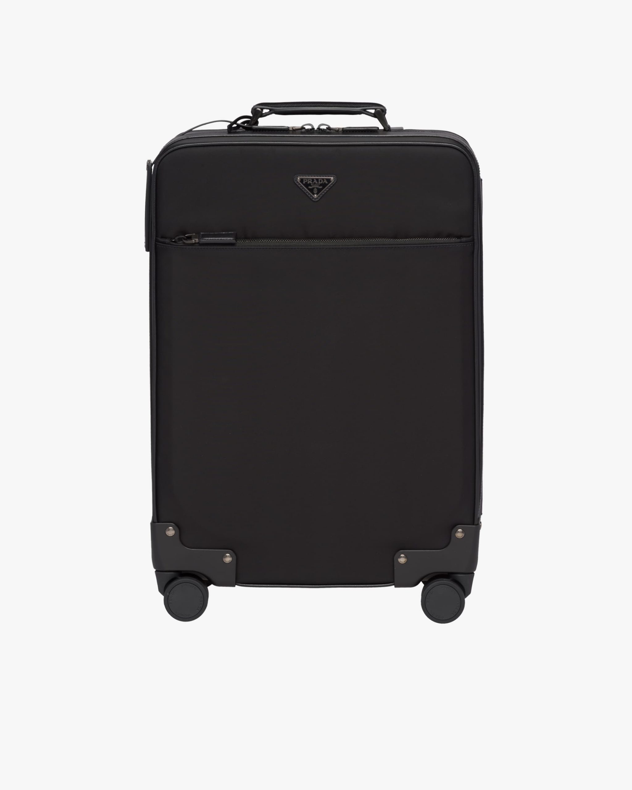 Prada has designed this nylon trolley with Saffiano leather trims and rigid corners in a compact, cabin-size format to allow you to travel in elegance and comfort. Equipped with pockets, handy compartments, detachable name tag and Bluetooth technology to enable you to track the trolley within a 40-m radius.
