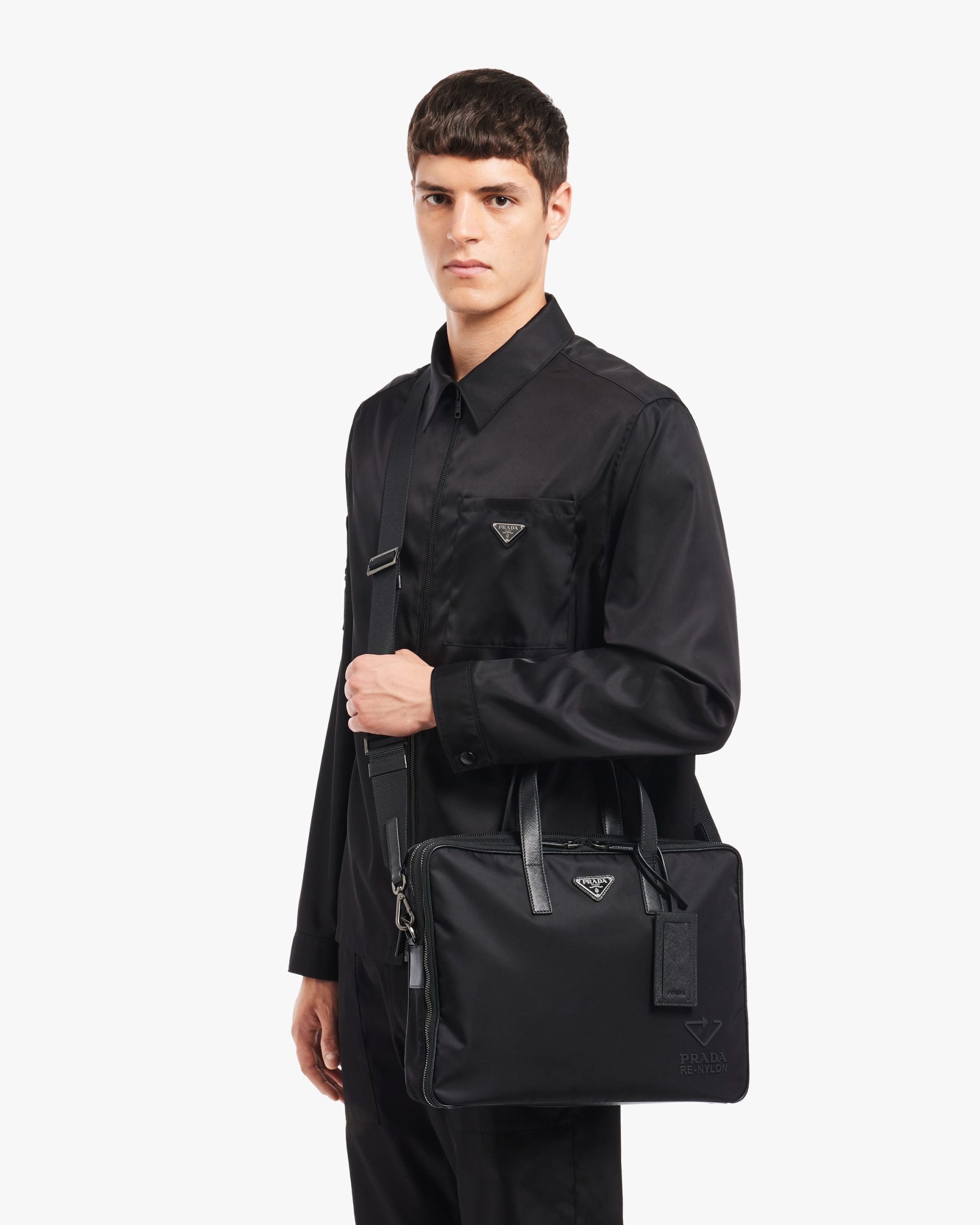 The classic men’s briefcase is redesigned in regenerated nylon for the new season. The Prada Re-Nylon logo decorates the accessory with a double handle and shoulder strap that stands out for its sophisticated details.