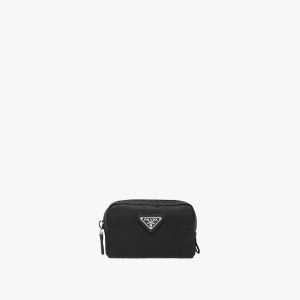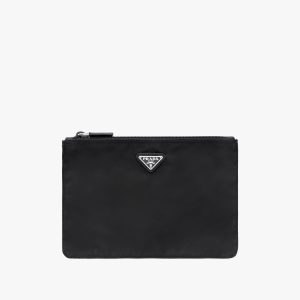 This pouch is characterized by a clean, elongated silhouette and is accented by an enameled triangle logo, leather zipper pulls, and logo-print lining. This practical, versatile accessory is made of Prada’s innovative Re-Nylon fabric produced from recycled plastic materials collected in the ocean.