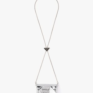 This practical Saffiano credit card holder with six slots and a center pocket is decorated with the lettering logo.