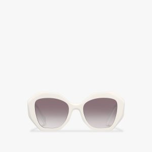 Sunglasses with a sleek metal frame characterized by the geometric frame front and elegant enameled details that define the side rims of the lenses. Prada lettering logo.