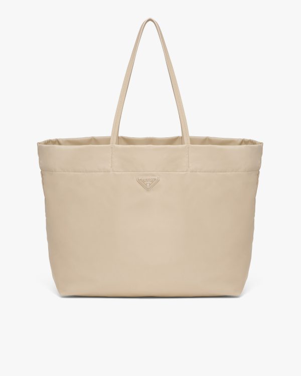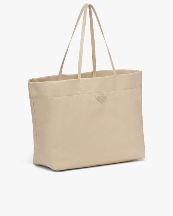 Desert Beige Re-Nylon and Saffiano leather tote bag