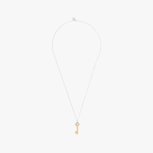 This key-shaped pendant decorating the necklace comes in yellow, white and rose gold.