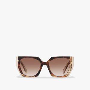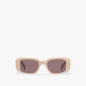 Oversized sunglasses with modern elegance. The frame is characterized by its square shape highlighted by the thick rims. The temples echo the stylistic elements of the ?Monochrome? collection thanks to the exclusive tonal Prada Lettering logo.