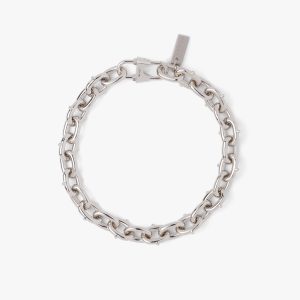 Prada’s historic symbol decorated with enamel defines this pair of earrings. Iconic and sleek, the triangle logo is the protagonist of a new line of jewelry made of 925 sterling silver that reinterprets punk influences in a modern way.