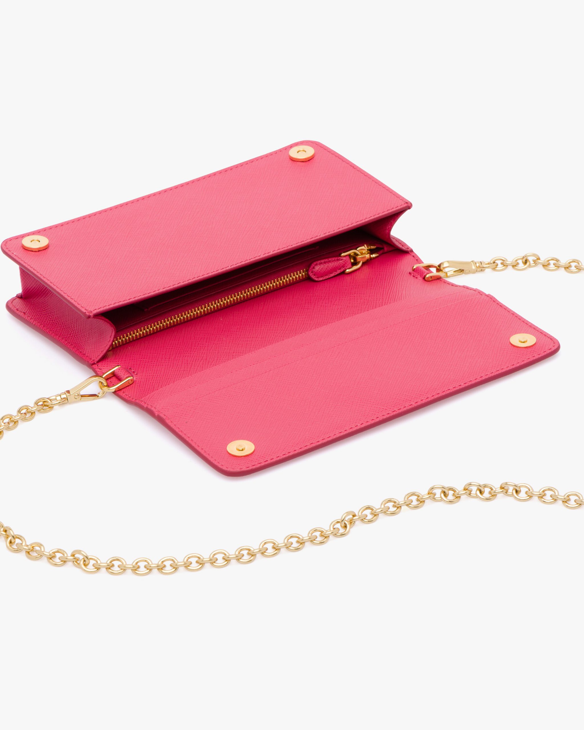 Refined and with a minimal design, this Saffiano leather mini-bag has a detachable chain shoulder strap.