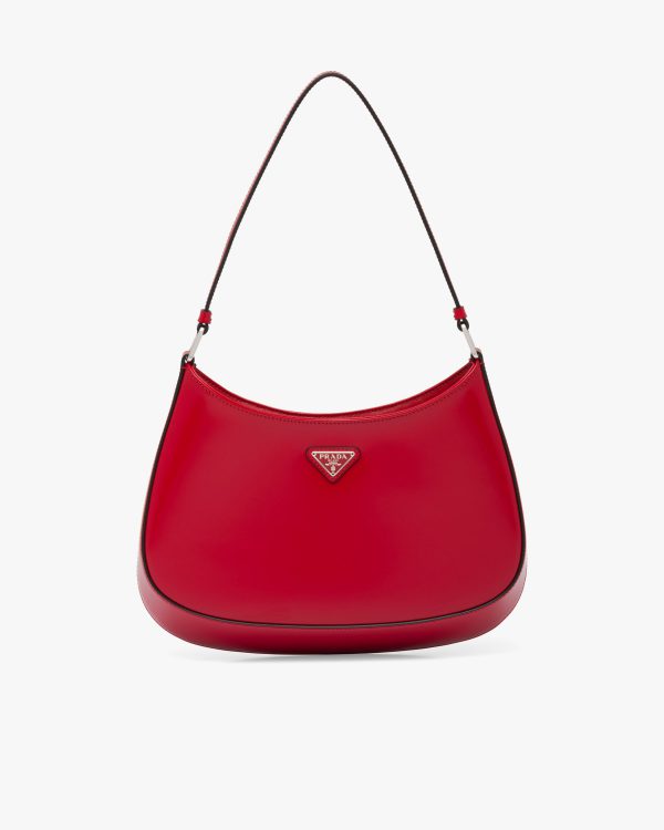 The Prada Cleo bag with sophisticated allure reinterprets an iconic design of the brand from the 1990’s. Sleek curved lines emphasized by the particular construction rounded on the bottom and sides give this hobo bag a soft, light look. Brushed leather, a modern and versatile material that is distinctive in Prada collections, is ideal for creating always new combinations and contrasts. The enamel triangle logo decorates the silhouette.