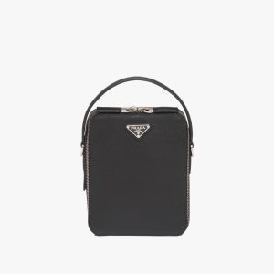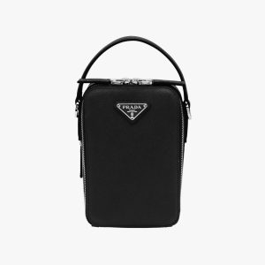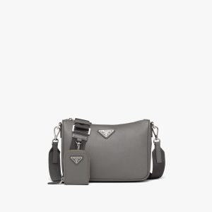 The lines are sleek on the contemporary Prada Brique bag with a leather handle and detachable adjustable nylon tape shoulder strap that makes the design light and versatile. The accessory is made of brushed leather, an iconic material of the brand since the nineties and historically tied to the luxury world. The triangle logo first introduced on trunks designed by Mario Prada enhances the accessory, a perfect blend of elegance and practicality.