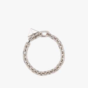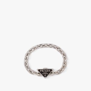 The brand name is engraved on the front part of this ring. Iconic and sleek, the triangle logo is the star of a new line of 925 sterling silver jewelry that reinterprets punk influences in a modern way.