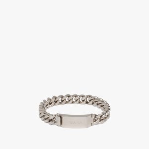 The brand name is engraved on the front part of this ring. Iconic and sleek, the triangle logo is the star of a new line of 925 sterling silver jewelry that reinterprets punk influences in a modern way.