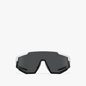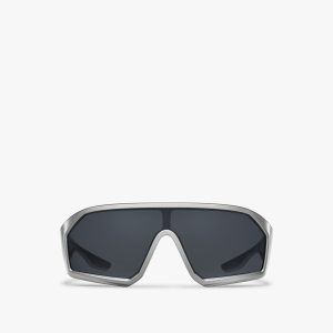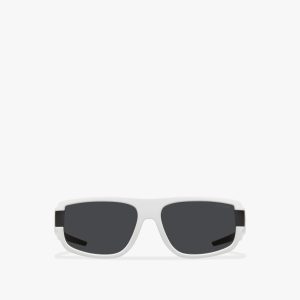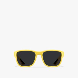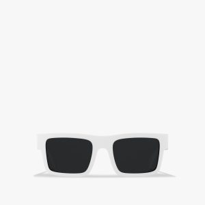 Acetate sunglasses from the Prada Symbole collection. The bold rectangular frame is crafted with a sophisticated combination of acetate layers highlighted by contrasting colors on the rims. The three-dimensional crafting of the temples is embellished with an iconographic interpretation of the traditional Prada triangle logo.