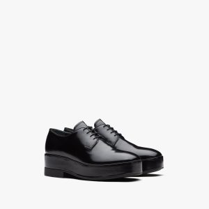 Black Brushed leather laced derby shoes