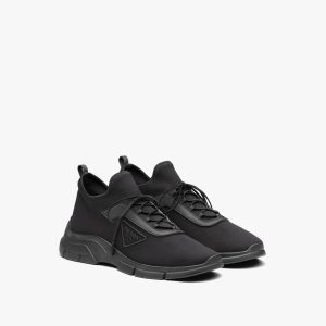 Black Prada Monolith brushed leather and nylon lace-up shoes