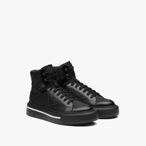 Black Prada Macro Re-Nylon and brushed leather high-top sneakers