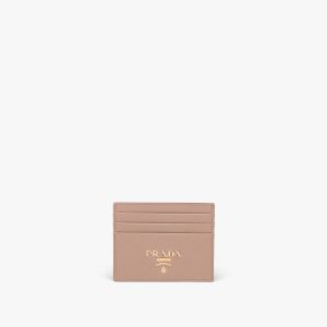 Powder Pink/fiery Red Saffiano Leather Card Holder